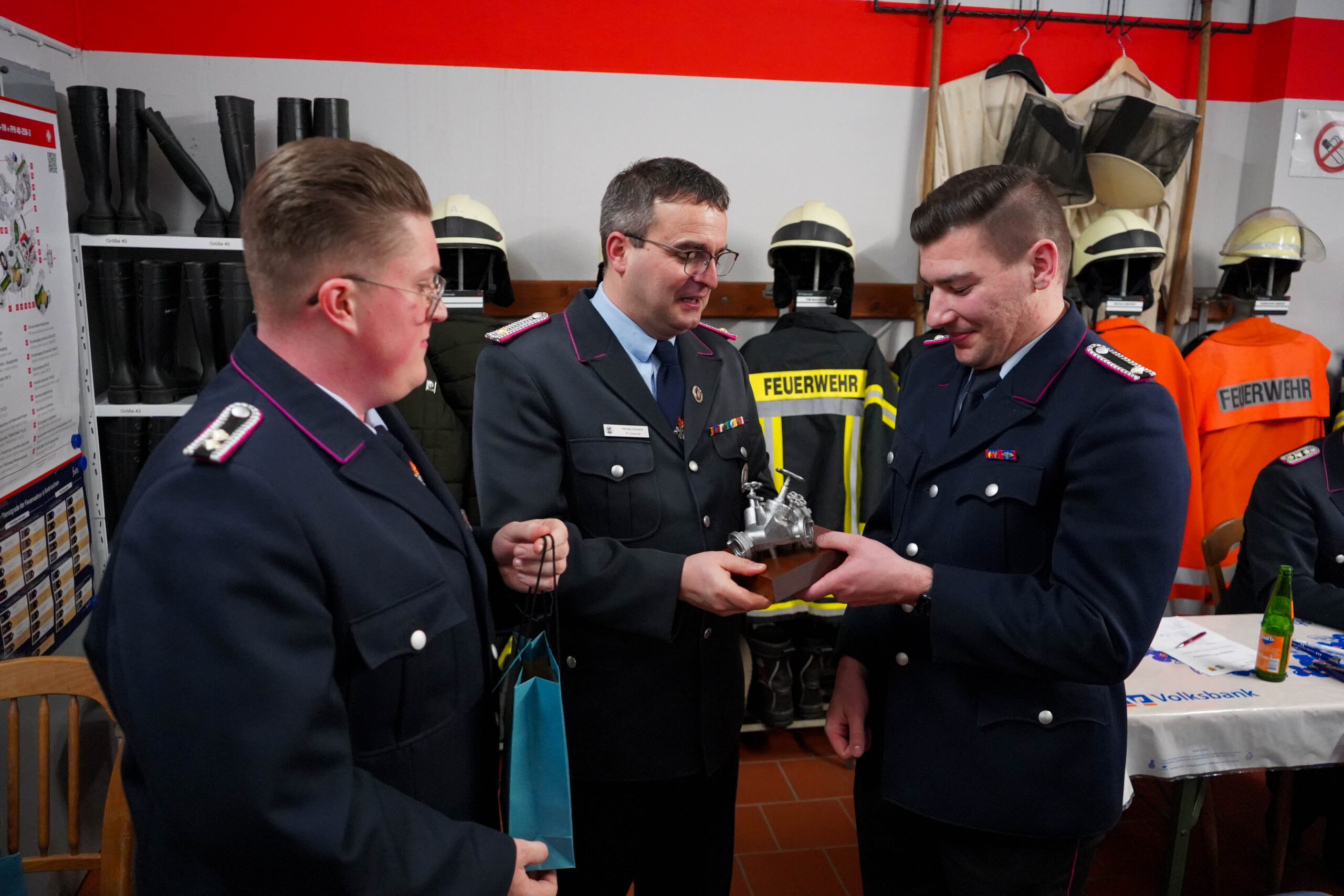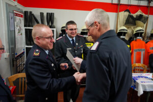 Zum Abschluss der Jahreshauptversammlung bedankte sich Ortsbrandmeister Herwig Zwickert bei mehreren Mitgliedern für ihr besonderes Engagement im vergangenen Jahr. Besonders hervorgehoben wurden Wilhelm Ude für die Leitung der Freitagsrunde, Reiner Bachstein, Daniel Reinhold, Michael Klügel und Christoph Wende für ihre Arbeit als Hausmeister im Feuerwehrhaus, sowie Heike Bialaschewitz für ihre kontinuierliche Tätigkeit in der Brandschutzerziehung. Zudem würdigte Zwickert die Leistungen von Jannik Luginbühl für die Gestaltung der eigens programmierten Feuerwehr-App und Ida-Helene Zwickert für die Pflege der Social-Media-Auftritte der Feuerwehr.