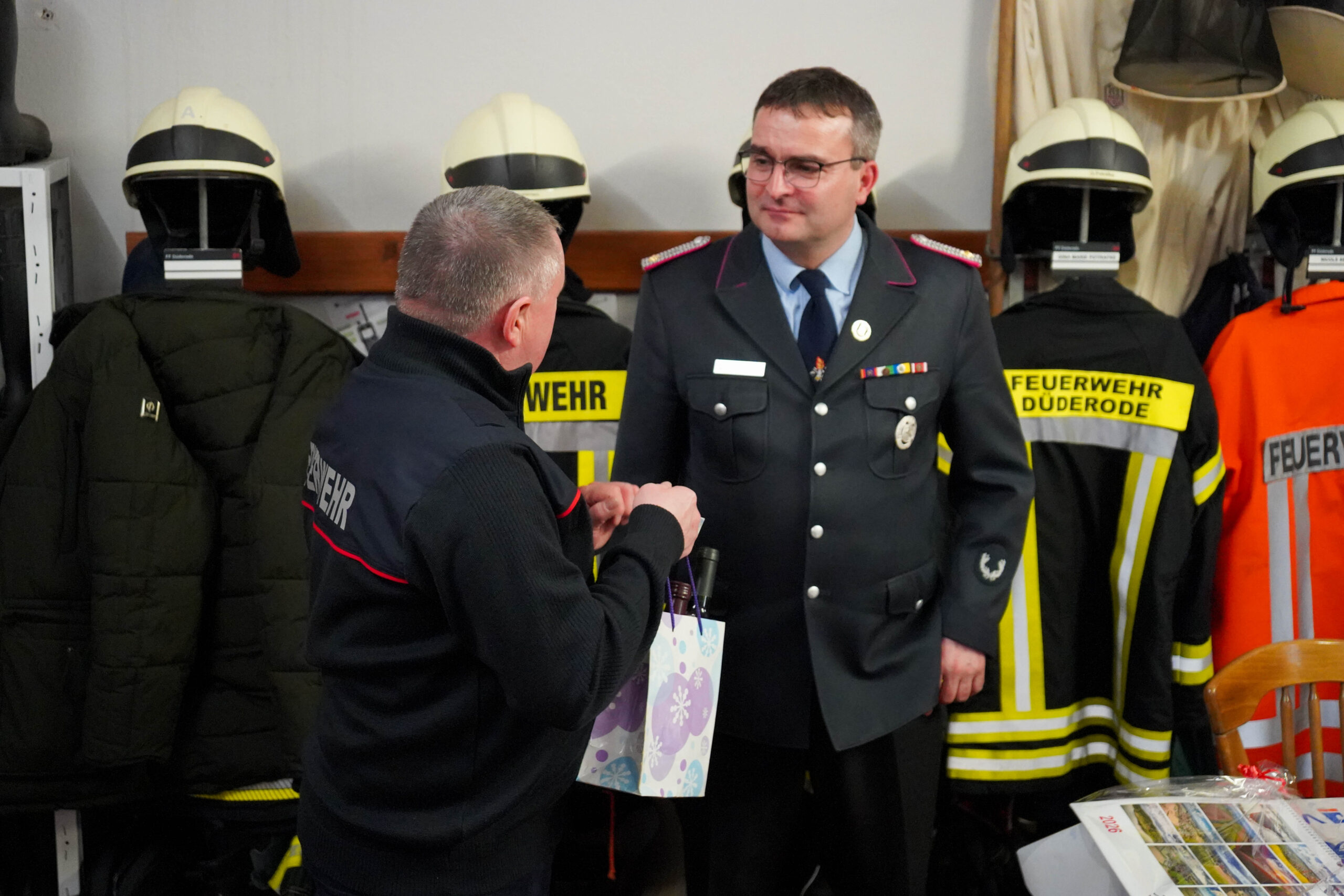 Organisatorisch wurden im Berichtsjahr unter anderem die Funkrufnamen umgestellt sowie neue Dienstgradabzeichen eingeführt. Die Zusammenarbeit mit der Feuerwehr Oldenrode entwickelte sich sehr positiv. Der gemeinsame Dienstplan ist etabliert, und der Zusammenschluss zur Freiwilligen Feuerwehr Düderode-Oldenrode schreitet weiter voran. Die Planungen für ein gemeinsames Feuerwehrhaus wurden aufgenommen. Abschließend dankte Zwickert allen Funktionsträgern und Kameraden für ihre geleistete Arbeit und betonte das umfassende Programm der Feuerwehr, das von der Kinderfeuerwehr bis zur Freitagsrunde reicht.
