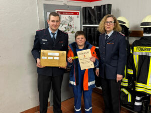 Der Ortsbrandmeister aus Wiershausen, Kai Beyert, würdigte ebenfalls die erfolgreiche Arbeit, wünschte weiterhin viel Erfolg und überreichte dem Jugendwart zwei Dosen Gummibären sowie ein Kuvert.