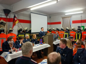 Der stellvertretende Gemeindejugendfeuerwehrwart Clemens Falk lobte die Mitgliederstärke der Jugendfeuerwehr Düderode sowie die Teilnahme mit zwei Gruppen an den Wettbewerben und wünschte für 2026 erneut eine starke Beteiligung.